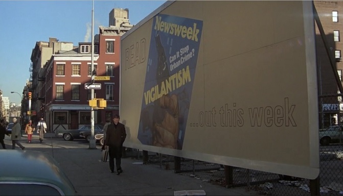 gives us a New York in the grip of a reign of terror; this doesn’t look like 1974, but like one of those bloody future cities in science-fiction novels about anarchy in the twenty-first century.