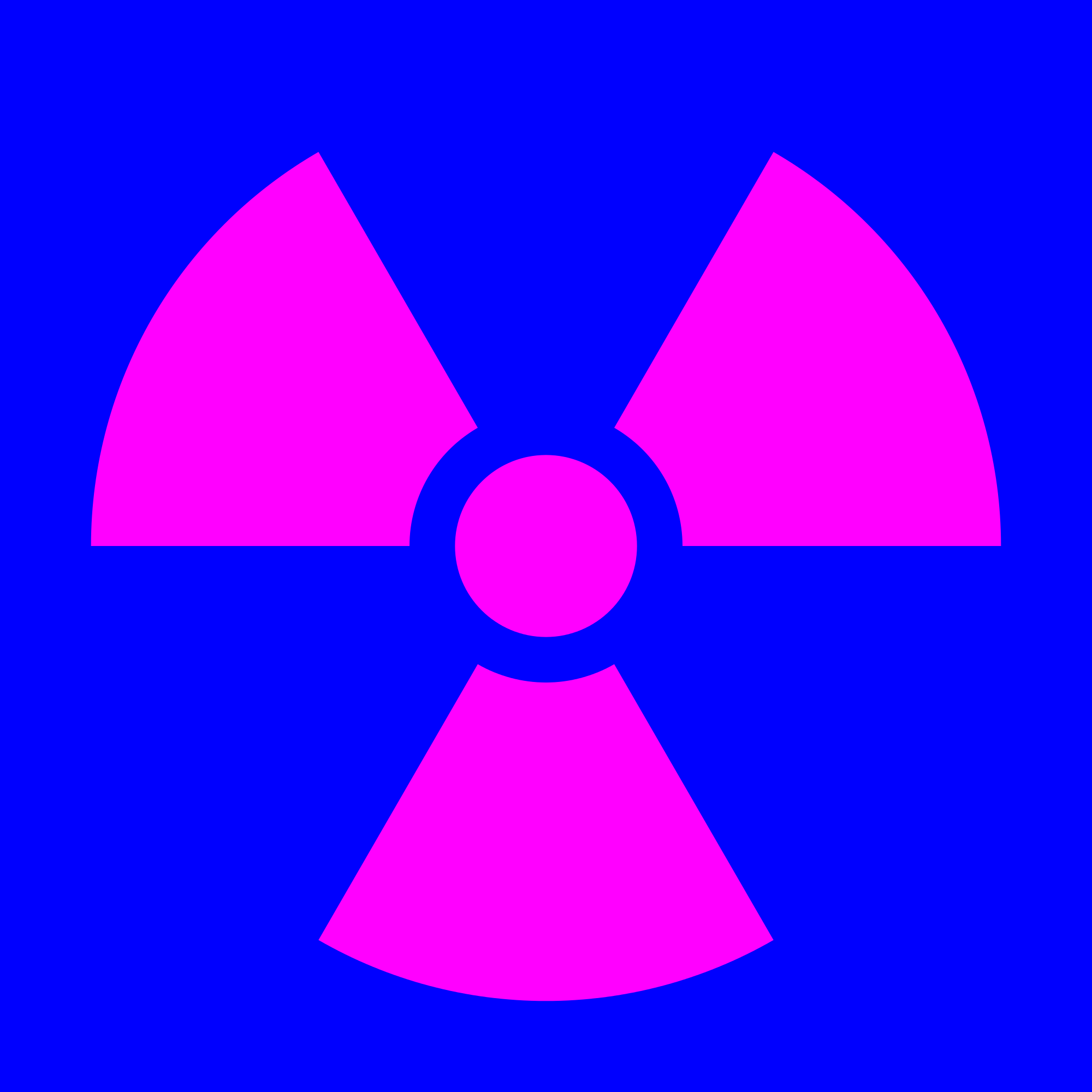The International Radiation Symbol or Ionizing Radiation Trefoil Warning Symbol was created at the University of California Berkeley Radiation Laboratory in 1946. Designed informally and originally intended for lab use only, the symbol was—according to Nels Garden, head of the laboratory’s Health Chemistry Group—“supposed to represent activity radiating from an atom,” and originally consisted of a magenta trefoil set against a blue background.