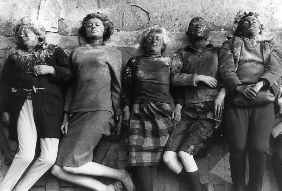 p03pd3c7 Published January 1, 2017 at 976 × 664 in ‘The Possibility of Life’s Destruction’ by Discharge, 1982 ← Previous Next → A scene from The War Game (1965) showing casualties of a nuclear attack Share this:Tweet