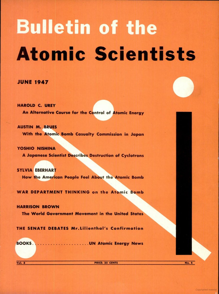 june1947 Published January 26, 2017 at 1422 × 1909 in ‘The Bulletin of the Atomic Scientists’, 1947 – 1984 Next → Bulletin of the Atomic Scientists, June 1947 cover Share this:Tweet