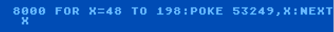 The player’s horizontal position is stored in a dedicated register for each player. Simply POKEing a value into this register will instantly pop the player to a new position, making horizontal movement extremely easy. Vertical movement is a bit more difficult, since we need to copy our player bytes into a different location along the memory strip, which we’ll discuss in a moment.