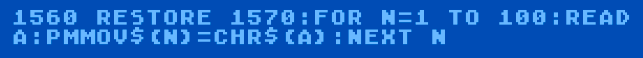 The player movement machine language routine, provided as a series of bytes in a DATA statement in the ANALOG article, is loaded into a string variable, exactly like we did with our player images.