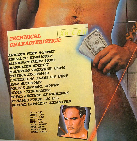 “Solo Me Muevo Por Dinero” (listen here) is the work of Spanish brothers Xeno and Tucho Baladon, known collectively as Xalan. The Euro disco duo released only two 12” singles, this and 1987’s Revolution Without Solution. The acquisitive, upwardly-mobile young urban professionals who became known as Yuppies in the early 1980s made their appearance in Spain at the tail end of an explosion of popular creativity—and during a rise in disposable income—that followed the death of military dictator Francisco Franco in 1975. And despite the euphoric trills and simple, driving melody, there is an audible undertone of melancholy in “pleasure unit” A-22PMF’s ode to its hedonistic lifestyle—perhaps the conflicting emotions of a culture that, in its rush for personal wealth, worried that (as the song’s lyrics attest) it no longer knew what emotions were.