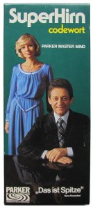 One of the various editions released in Germany—where it was known as Superhirn, or “Superbrain”—featured Hans Rosenthal, one of West Germany’s most popular television presenters of the 1970s and 1980s, who declared on the cover, “Das ist Spitze” (“It’s great”). Behind him stood Monika Sundermann, the hostess of Dalli Dalli, the quiz show on which they appeared together, and although the two respect the original’s seated-man and standing-woman format, the picture breaks with Mastermind visual tradition by having Rosenthal and Sundermann both wearing entirely unambiguous expressions and looking directly and frankly at the viewer. A later German version (1976) featured a colorful illustration of an older gentleman clearly intended to represent Albert Einstein.