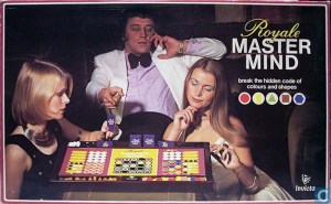 Royale Mastermind (1972) presented a surprisingly sleazy new twist on the Mastermind aesthetic, with its image of a seedy playboy imperiously dictating the play from his sofa to two women kneeling on the floor. This machismo-drenched vision of the game, which by this time possessed a distinctly commercial aura, was strangely at odds with the campy disdain of the original box, and the roles of the two women here seem almost subservient, a million miles away from Cecilia Fung’s coolly appraising gaze.