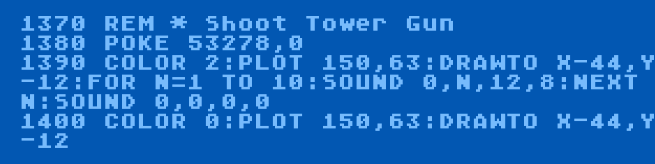 L5 5CodeShoot1 Published March 22, 2017 at 655 × 164 in Adventures in Atari BASIC: Lesson Five – Take Aim and Fire ← Previous Next → Share this:Tweet