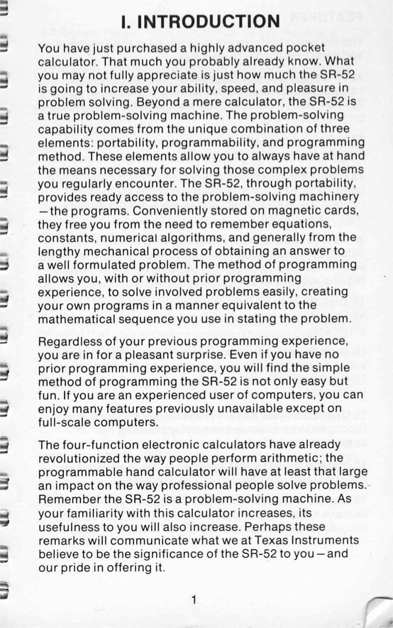 - Texas Instruments SR-52 Owner’s Manual, Introduction