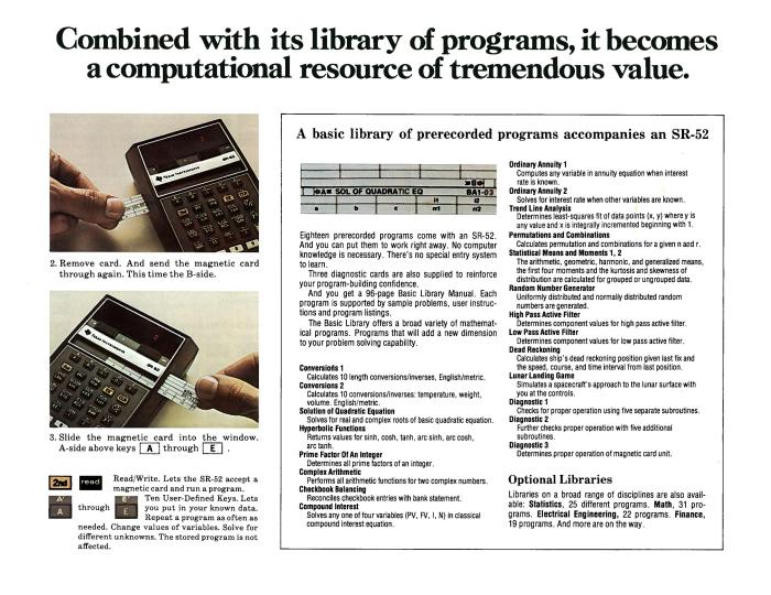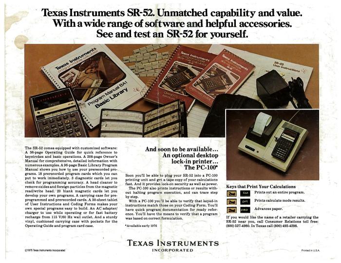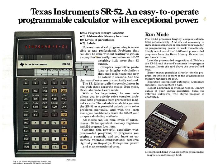 - Texas Instruments SR-52 sales leaflet, introduction copy