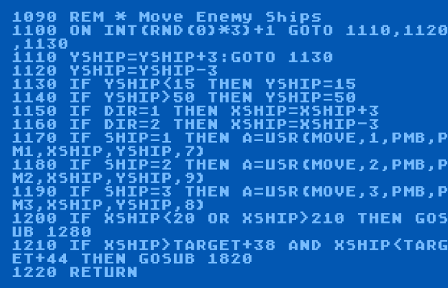 L6 3CodeMoveShip Published May 10, 2017 at 652 × 419 in Adventures in Atari BASIC: Lesson Six – Enemies and Earthquakes ← Previous Next → Share this:Tweet
