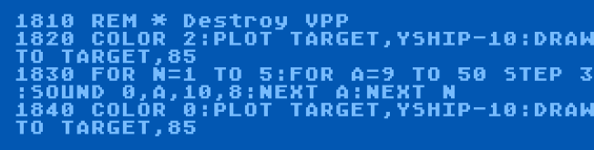 L6 4CodeShipLaser Published May 10, 2017 at 652 × 165 in Adventures in Atari BASIC: Lesson Six – Enemies and Earthquakes ← Previous Next → Share this:Tweet