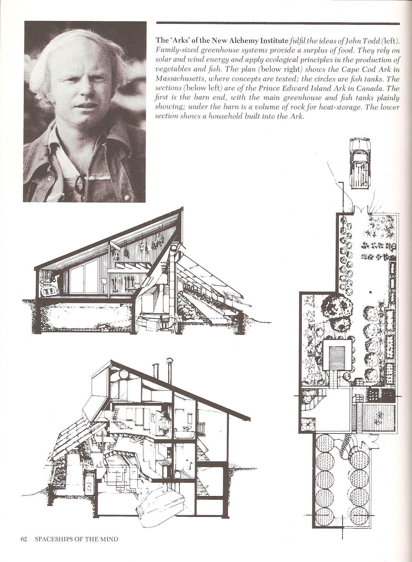 - Some of the structures that were part of the “Ark” project at New Alchemy Institute