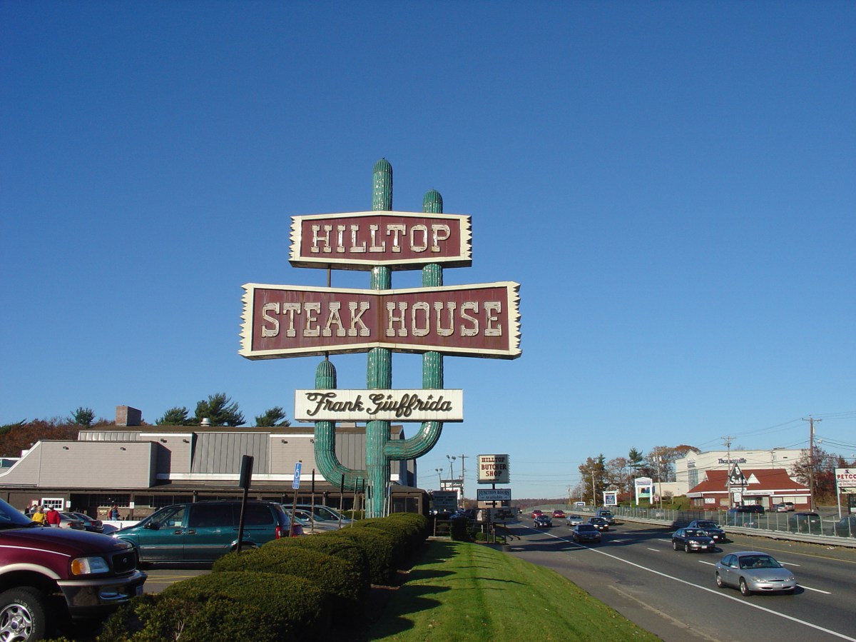 route 1 hilltop steak house Published September 8, 2017 at 2592 × 1944 in Extinction-Level Events: Vanishing American Kitsch on Boston’s Route 1 ← Previous Next → Hilltop Steak House, Saugus MA, circa early 2000s Share this:Tweet