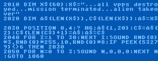 L8 05CodeMarquee Published July 25, 2017 at 650 × 253 in Adventures in Atari BASIC: Lesson Eight – Multiple Graphics Modes and Marquee Text ← Previous Next → Share this:Tweet