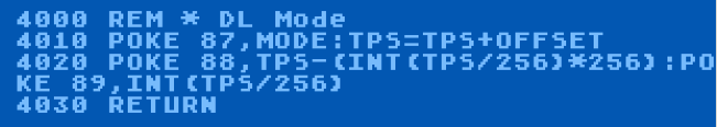 L8 09CodeDLMode Published July 25, 2017 at 651 × 116 in Adventures in Atari BASIC: Lesson Eight – Multiple Graphics Modes and Marquee Text ← Previous Next → Share this:Tweet