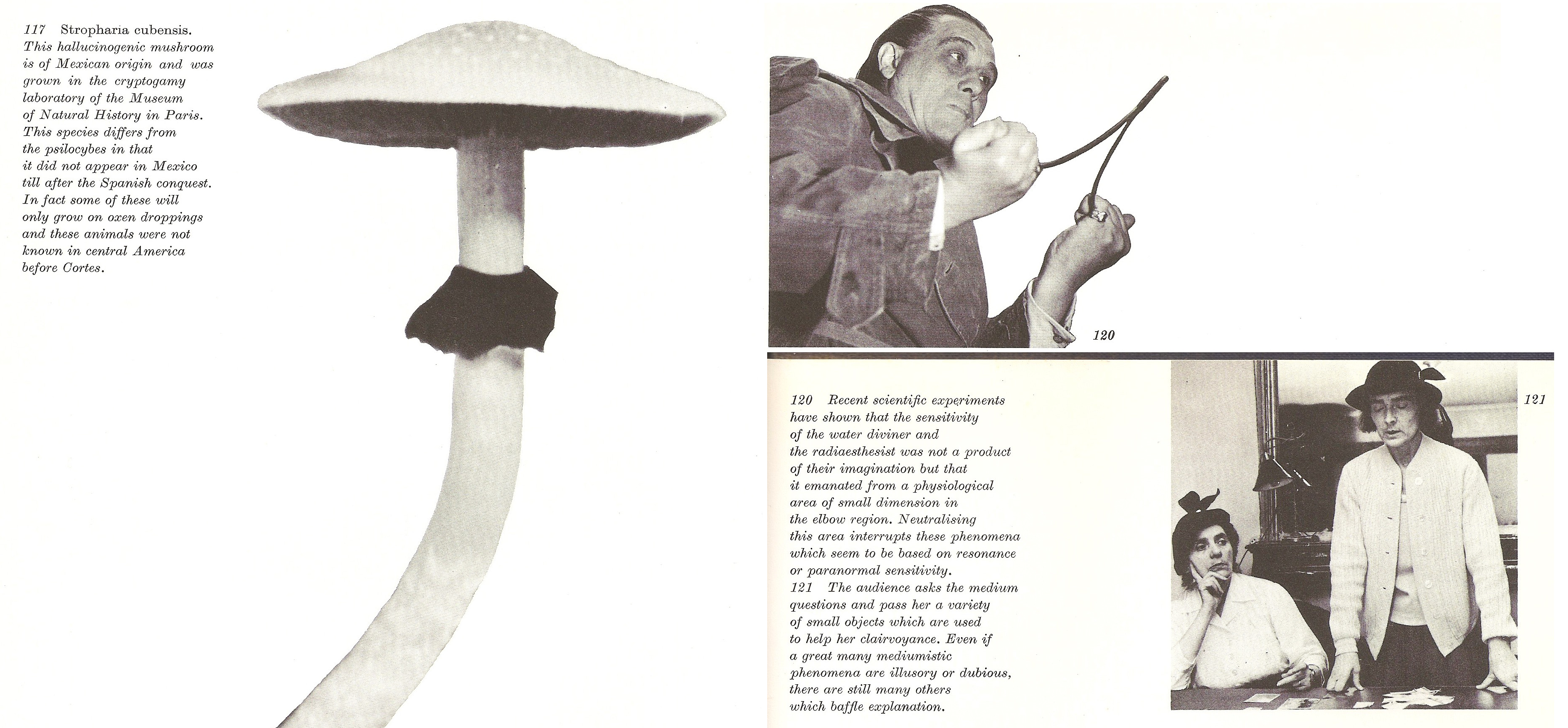 Alleau, an engineer and historian of alchemy and Freemasonry, had previously worked with founding Surrealist André Breton in the 1950s on the traditions of Western occultism, alchemy, and phenomena like automatic writing as they related to Surrealism. In the 1960s, as the paranormal and occult underground began bubbling into the mainstream (ushered in by Alleau’s countrymen Louis Pauwels and Jacques Bergier in their 1960 book The Morning of the Magicians), a series like The New Illustrated Library could afford to spend one volume looking at the world of the paranormal as part of the pageant of human invention.