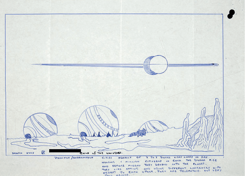 procyon andromedon drawing 2003 Published January 22, 2018 at 858 × 613 in ‘UFO Drawings From The National Archives’ by David Clarke, 2017 ← Previous Next → The vision of the “Home World of the Procyons/Andromedons” submitted to the MoD, 2003 Share this:Tweet