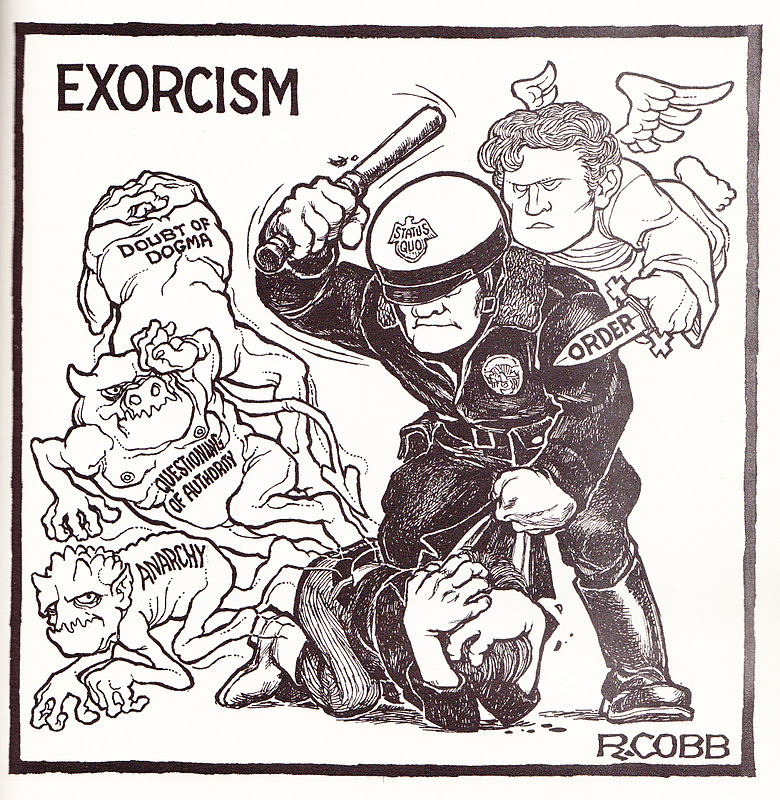 Yet, even as its outsider status was being consolidated, a parallel vision of the leather jacket—representative of a hyper-aggressive, buckled up masculinity straining at the leash to give vent to its violent urges—had been maturing in the psyches of the west, identifying the garment as a symbol of reactionary oppression, with wearers including the SS, the Luftwaffe, the Bolshevik commissar, and the motorcycle cop. A fascistic, authoritarian interpretation of men’s leather which perhaps achieved its perfect dream summation in the police robots of George Lucas’s THX 1138 (1971).