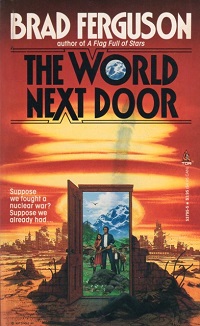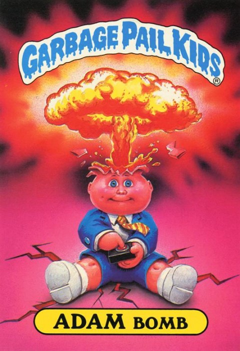 As the arms race escalated during the early 1980s, images of mushroom clouds became increasingly luminous, as though adapting to the millenarian mood of the times. Smooth, flattened dome-like forms resembling those seen in the French nuclear tests carried out in Mururoa in 1970 began to appear, far removed from the early images of a smoky stalk topped by a numinous mass. With their 1985 Adam Bomb, the Topps Company’s Garbage Pail Kids trading cards produced a surprisingly enduring image of the “classic” mushroom cloud, but, as the decade progressed and international geopolitics shifted once more, mushroom clouds began to change form again, becoming now almost abstract assemblages of rings and blastospheres rendered in blinding, divine light: David Mattingly’s cover for Brad Ferguson’s 1990 The World Next Door provides a good example. The mushroom cloud had completed its transformation into pure metaphor.
