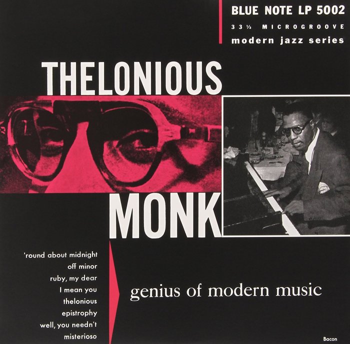 After serving in the Marines during World War II, self-taught artist and typographer Paul Bacon (1923-2015) landed in New York City, where he designed several now-famous album covers for jazz labels Blue Note and Riverside Records. Bacon had discovered jazz in the ’30s, and he remained a great fan—he was befriended by Thelonious Monk, among others—throughout his life. In 1950, at the request of a friend, Bacon provided interior illustrations and designed the jacket for Bill Westley’s Chimp on My Shoulder, about the author’s search for chimpanzees in Africa. This led to commissions from several other publishers, and his breakthrough came in 1956, when his cover design for Meyer Levin’s novel Compulsion ushered in the much-imitated “Big Book Look,” a concept defined by a large, stylized title and prominent author name accompanied by a minimalist figure or symbol against a spacious background—the visual equivalent of a jazz ballad solo.