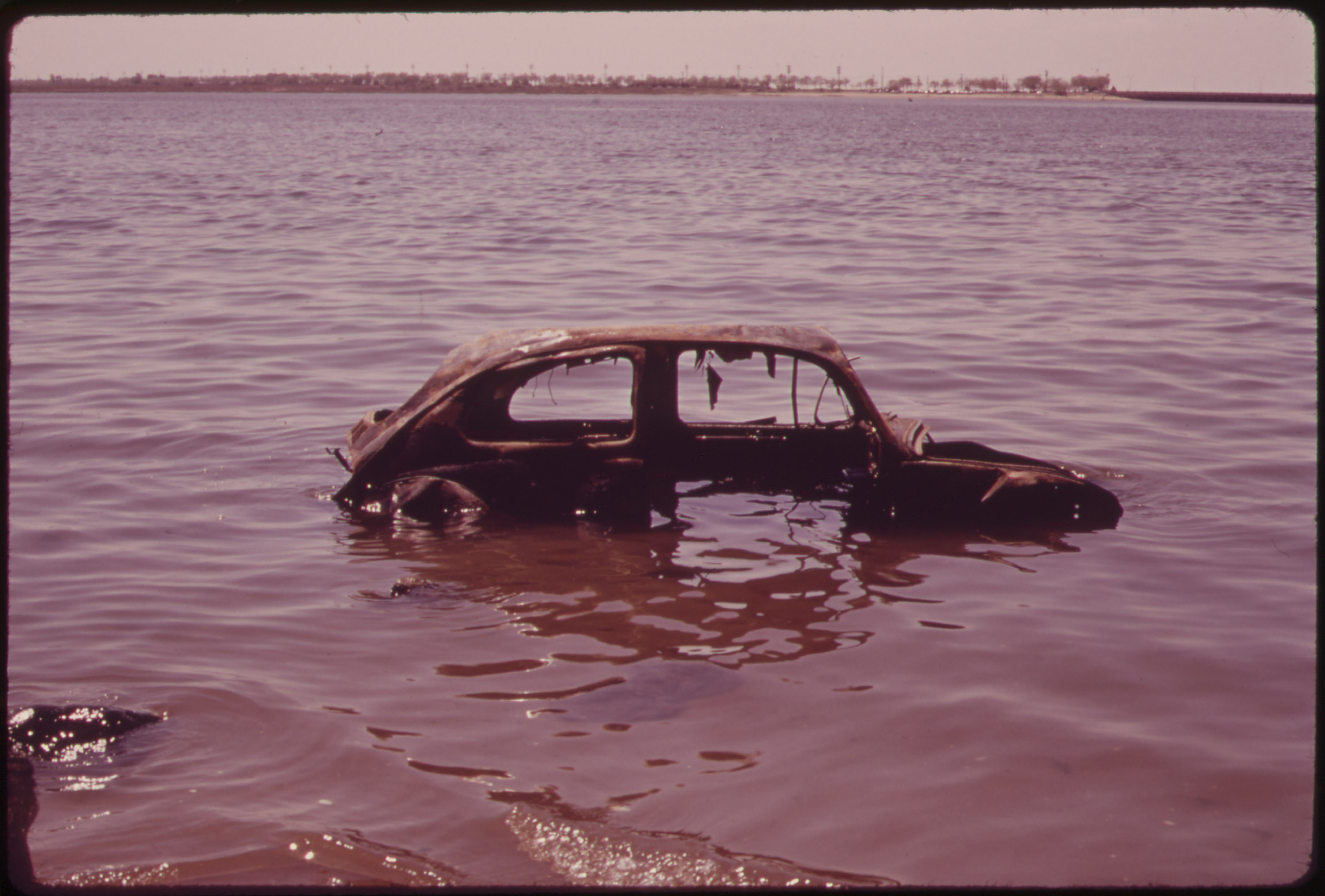 - Remains of an automobile in Jamaica Bay, New York. Photo by Arthur Tress, 1973