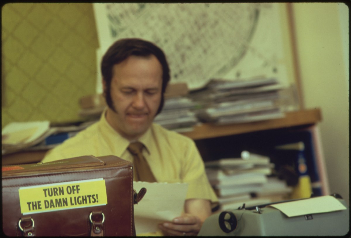 This “Turn Off The Damn Lights” sticker was part of a public information campaign in the fall of 1973 in Portland, Oregon. Photo by David Falconer, 1973