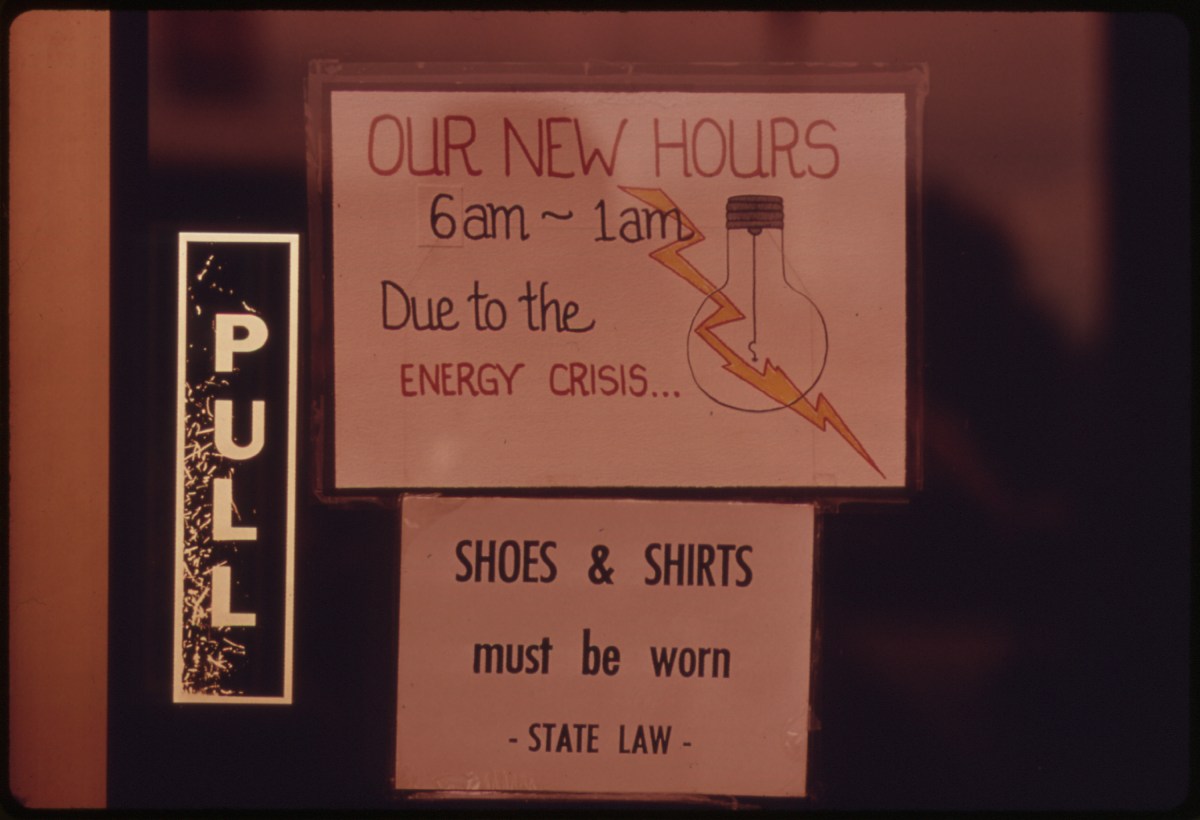 david falconer energy crisis hours 1973 Published March 26, 2018 at 3000 × 2050 in Sorry No Gas: Photos from Documerica, 1972 – 1975 ← Previous Next → Curtailed hours during oil crisis in the fall of 1973. Photo by David Falconer, 1973 Share this:Tweet
