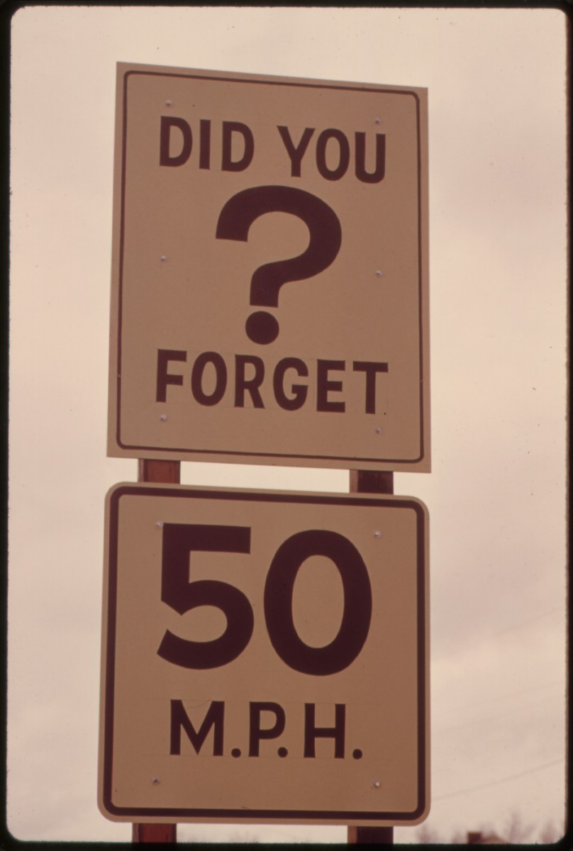 New speed limits in Oregon a few months before the Nixon administration issued a nationwide 55 mph speed limit. Photo by David Falconer, 1973