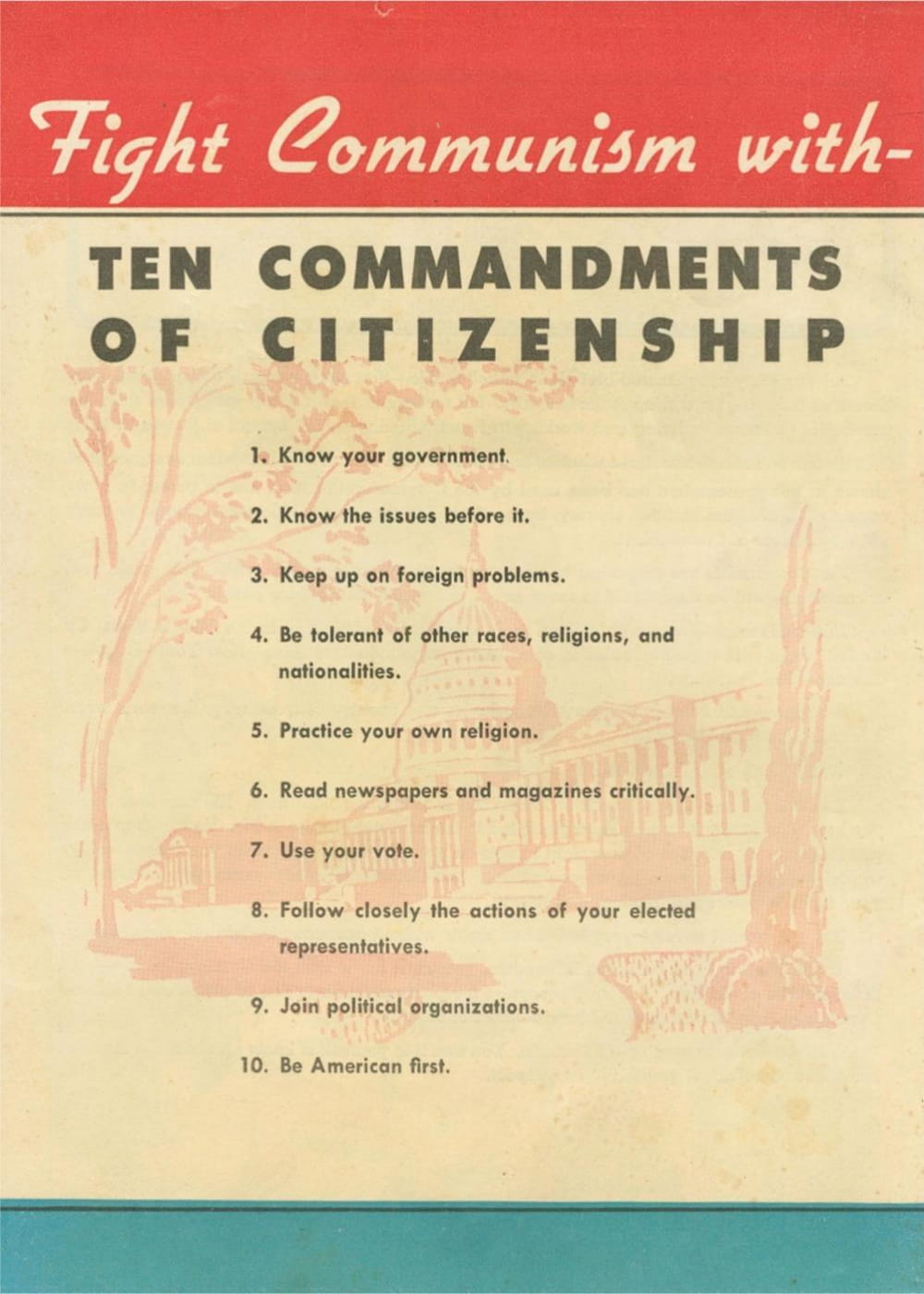Is This Tomorrow 1947 ten commandments of citizenship Published April 30, 2018 at 1000 × 1400 in “It Must Not Happen Here!”: ‘Is This Tomorrow? America Under Communism’, 1947 ← Previous Next → Share this:Tweet