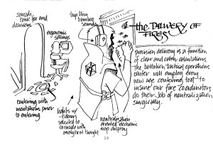 - The First Earth Battalion’s combination of ancient techniques and modern technology is illustrated here as “omni-directional thought.”
