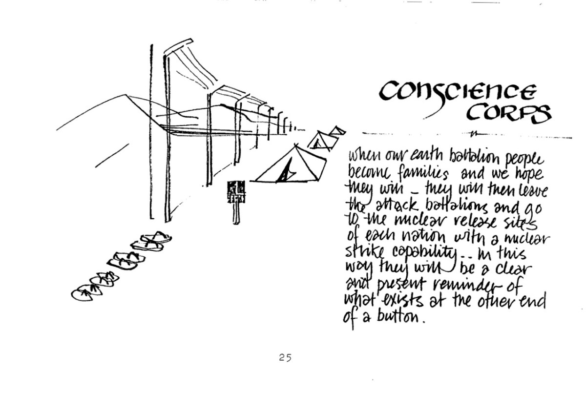 Channon envisioned families of his warrior-monks highlighting the danger of nuclear arsenals; nuclear disarmament groups used this very tactic throughout the Cold War.