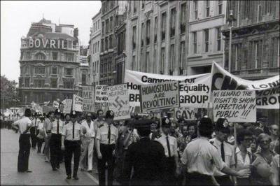 Here A Very English Scandal loosely alludes to an aspect of queer history hitherto missing—the development of a more defiant and politicized gay rights movement from the early 1970s, which moved on from the legislative campaigns of the 1960s to champion openness and combat homophobia, both societal and internalized. While we have no sense that Scott has interacted with this movement prior to the trial, here at this climactic moment there is an acknowledgement of shared solidarity.