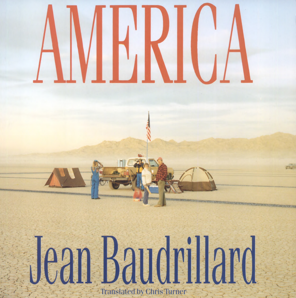 In the early 1980s, French philosopher, media theorist, and cultural scholar Jean Baudrillard visited the United States several times, taking in the vastness of the continent-spanning nation, from Manhattan to Manhattan Beach. In 1986, his account of these trips, America, was published in France. Two years later, the book came to the US in a translated edition. In the work, Baudrillard ruminates upon Mormons and breakdancers, fitness nuts and canned laughter on television, upon all of the sources of beauty and horror of American culture and society in the 1980s. Baudrillard’s prose itself, which flips from arch to sincere sometimes in the course of a single sentence, embodies all these contradictions and paradoxes. The most technologically advanced nation on Earth, Baudrillard remarks early on, “is the only remaining primitive society” (italics in original), “lacking a past” upon which it can meditate, constantly moving forward into the future, simultaneously riven and united by its staggering diversity in peoples and landscapes. Viewing American society as a European outsider, Baudrillard constantly returns in America to the momentous weight of the past—in terms of physical landscape, politics, and ideology—that presses down upon old Europe but is staggeringly absent in this optimistic, manic, young nation.