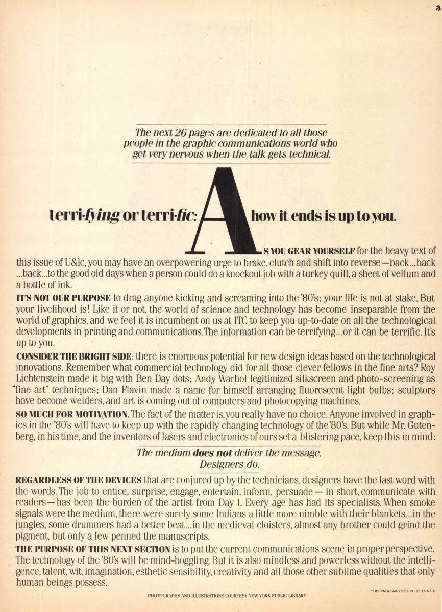 Introduction to U&lc’s “Vision ’80s” feature, U&lc Vol. 7 No. 2, 1980, which took the form of an abecedarian “A-Z” index of quotes from artists and writers about creativity.