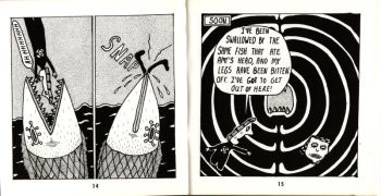 It is Spiegelman who attests to Beyer’s prolific obscurity: “Living in New York, it’s very easy to be skeptical about underground comix continued existence,” he told Cascade Comix Monthly back in 1979, “in a way that my compatriots in San Francisco don’t. [. . .] I think that one of the biggest problems is this thing that I just mentioned about no new blood. For instance, Mark Beyer, who, as far as I’m concerned is one of the most important third-generation cartoonists, has a very difficult time of it. He wouldn’t have if he had just been born five years sooner, but now he has a small book, he had to print it himself because none of the traditional underground publishers could handle it because of their economic situations. [. . .] The idea of a mainstream underground is a boggling one to me. I understand economically and realistically where that idea comes from, but if someone like Mark can’t find a reasonable outlet for his work, then there’s no chance for new artists to really develop.”