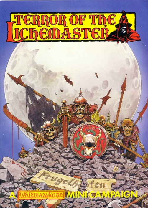 The theme of fantasy diversity surfaces again in the Warhammer campaign supplement The Terror of the Lichemaster (1986), a grisly tale of an undead uprising in the Alpine valley of Frugelhofen. Much of the sensibility here reflects that of the English Gothic cinema (think Hammer or Tigon films in the 1970s): remote European locations and sinister overlords, revolting peasants with pitchforks and flaming torches, and the Lichemaster himself: Heinrich Kremmler, the foul Necromancer who summons his army of undead. The name is clearly a pun on both Heinrich Himmler, the Nazi occultist, and Heinrich Kramer, witch-hunter and author of the Malleus Maleficarum (“The Hammer of Witches”), published in 1487 as a handy guide to the persecution of scapegoats during the Inquisition. Heinrich is very much a two-dimensional caricature, with little more motive than to unearth the evils of the past and destroy all life that stands in his way. Any philosophy or motive that might drive him to genocide or to muster an army of undead—unthinking automatons whose only task is to follow orders—are unexplored, and the player is expected to play him very much as a Saturday morning cartoon villain, not a complex mirror of real world hatred and bigotry.