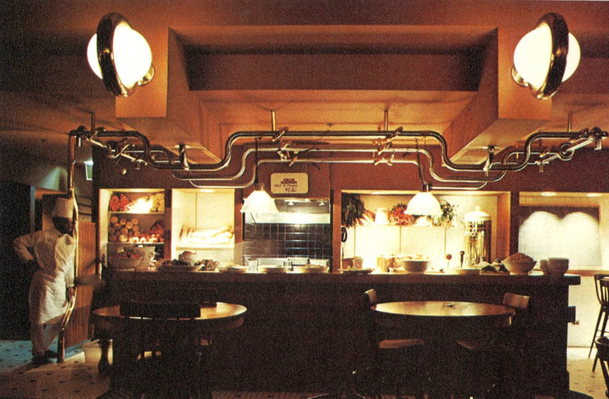 watm wtc 1981 2 Published March 30, 2019 at 1280 × 839 in The Big Kitchen at the World Trade Center, 1981 ← Previous Next → “The grille area of the Market Dining Rooms [is] woodsy, dark, rather masculine, with heavy brass details.” Share this:Tweet