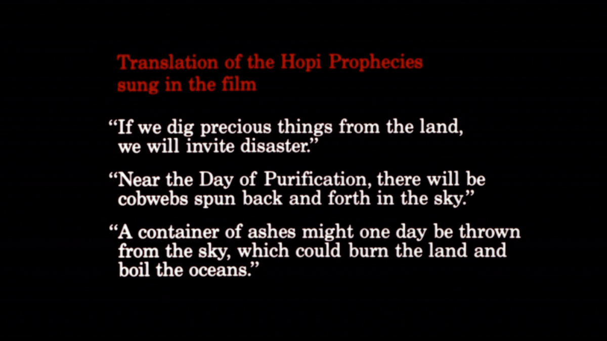koyaanisqatsi hopi prophecies Published April 30, 2019 at 1600 × 900 in Young Life Out Of Balance: The Impact and Legacy of ‘Koyaanisqatsi’ ← Previous Next → Share this:Tweet