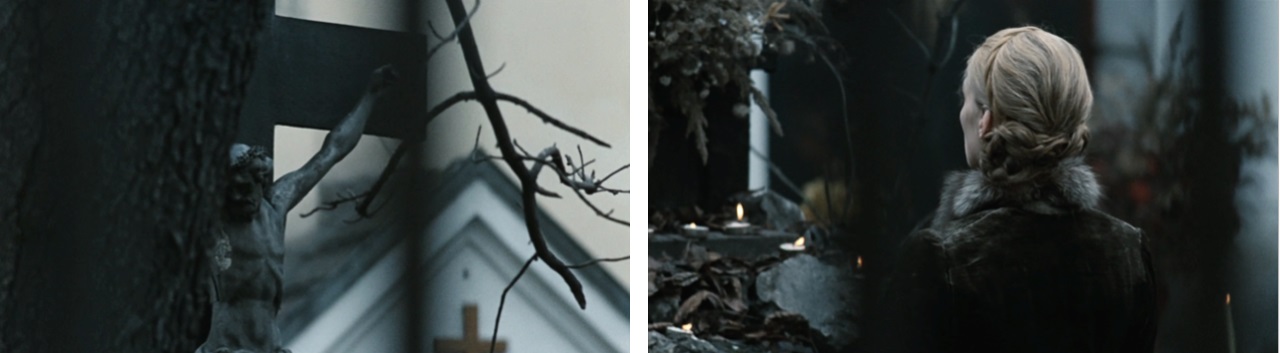 The scenes employing religious imagery together with politically-charged dialogue are offset by those featuring a young nun (Monika Niemczyk). The Devil portrays the nun, also nameless, as an almost idealized instance of earnest religious practice in that she has seemingly no political affiliation. Her scenes in the last third of the film also connote religion as a cultural resource or intangible force that exists “elsewhere” rather than as a concrete organization. She follows Jakub throughout the film, has a repeated habit of looking up to the sky, and on two occasions embraces him immediately after a traumatic experience—the first after he nearly kills his fiancee, and the second after he has two successive incestuous encounters and kills a prostitute. A scene late in the film where she removes her habit for the first time suggests both parity between herself and Jakub and between the film’s physical and emotional landscapes.