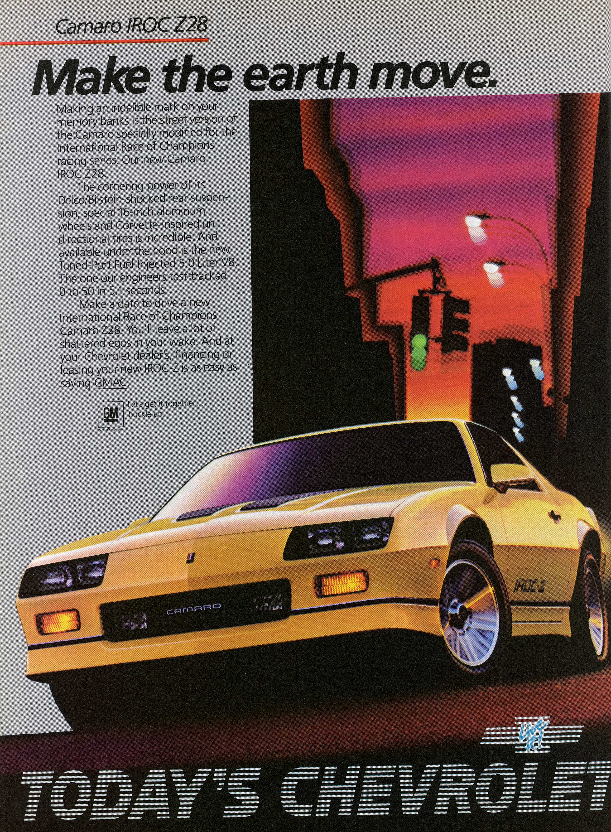 iroc 1985 Published July 1, 2019 at 2571 × 3500 in Heartbeat of America: The Chevy Camaro IROC-Z, 1985 – 1990 ← Previous Next → IROC print advertisement, 1985 Share this:Tweet