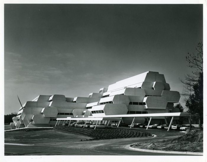 In 1969, pharmaceutical company Burroughs Wellcome commissioned renowned modernist architect Paul Rudolph to design its new corporate headquarters and research facility in Durham, North Carolina. The result was a visionary modular complex whose geometries created a futuristic melding of spaces and forms.