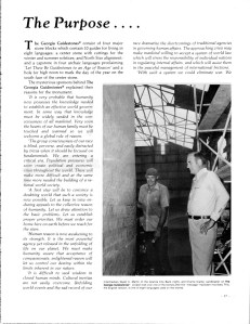“The Purpose” spends nearly two pages defending its population control policy from common political, cultural, and religious objections. Concerns about overpopulation were very timely in the 1970s: the the Club of Rome‘s report The Limits to Growth was published in 1972, and a constant theme throughout popular culture and media throughout the 1970s was an overpopulated and underfed future. The makers of the Guidestones propose that reproduction and parenting be “regulated”: “The wishes of human couples are important, but not paramount.” Coincidental in 1979 with the Georgia Guidestones project was the introduction of the People’s Republic of China’s “one-child policy,” which follows the hopes of “The Purpose” that “every national government develop immediately a considered ‘Population Policy’,” which would “take precedence over other problems, even those relating to national defense.” Later on within the booklet, an “independent” interpretation of the Guidestones’ message is provided by one Dr. Francis Merchant, a local Elberton citizen and English Ph.D. who died after the erection of the monuments but before the publication of the booklet. His assessments are more matter-of-fact than those of “The Purpose,” but take into consideration the cultural and political changes that would be necessary to live up to the aspirations of the Guidestones (along with dropping a tantalizingly Masonic reference or two: deeming God to be “the Great Architect,” for example).