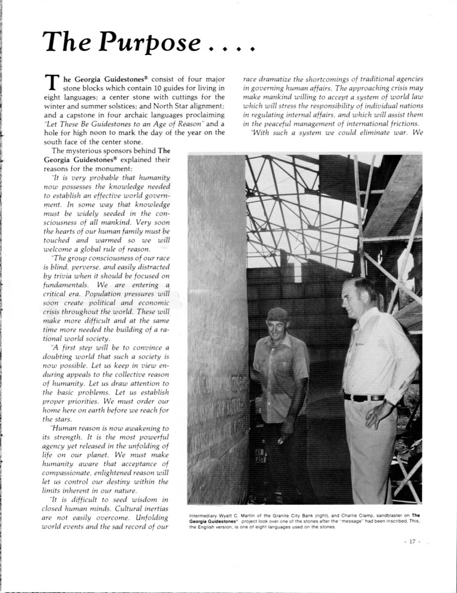 A photo of “intermediary” Wyatt Martin accompanies the beginning of the mysterious “Sponsors”‘ mission statement, “The Purpose.”
