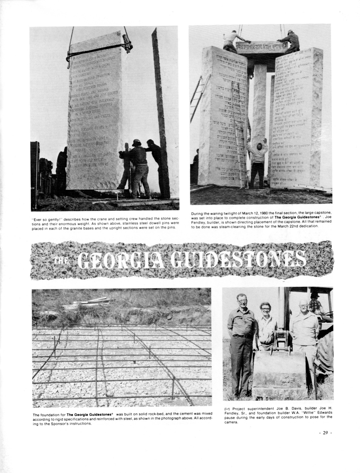the georgia guidestones 1981 page 29 ever so gently Published November 19, 2019 at 1249 × 1642 in American Monoliths: Local Pride and Global Anxiety in ‘The Georgia Guidestones’ ← Previous Next → The assembly and erection of the six-stone structure. Share this:Tweet