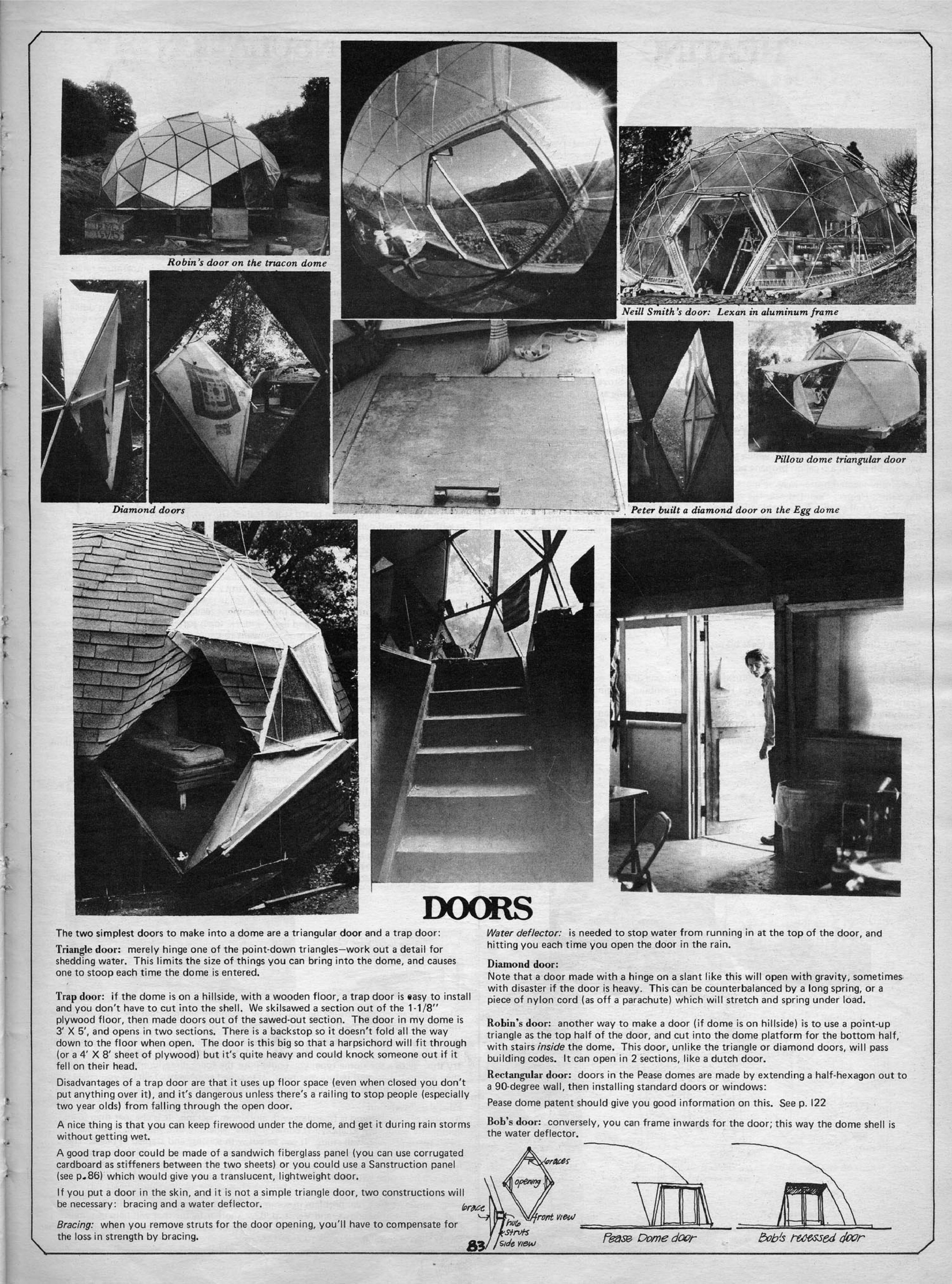 domebook 2 1971 doors Published December 10, 2019 at 3906 × 5267 in “Spacy Spheres and Funky Shacks”: The Otherworlds of 1971’s ‘Domebook 2’ ← Previous Next → Some of the more unusual dome door constructions. Share this:Tweet