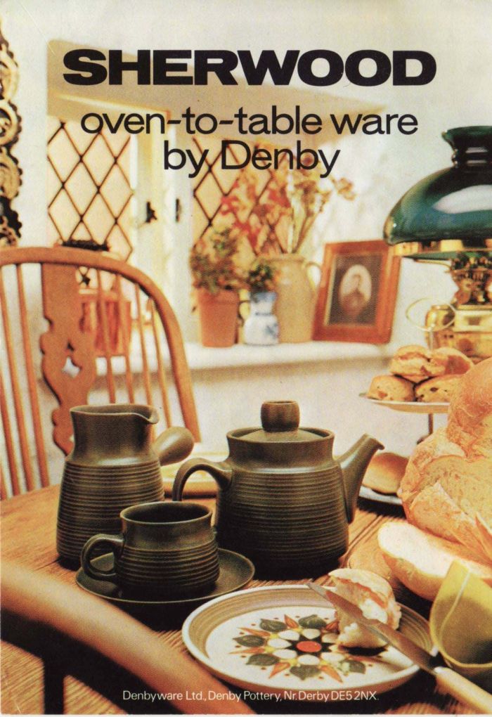 I’m exaggerating in my critique of Denbyware, of course, and especially of Sherwood. I grew up venerating it, and even today bits of our set continue to crop up unbidden in my life like ancestral relics. Designer Gill Pemberton produced some lovely work for the company, and Sherwood was one of her most memorable: strange grave goods that show the denizens of capitalist industrial society groping through their growing pay packets for something meaningful, something to connect them to who they are and to who they have been, even as they tuck into their Asda beefburgers. Something heavy.·