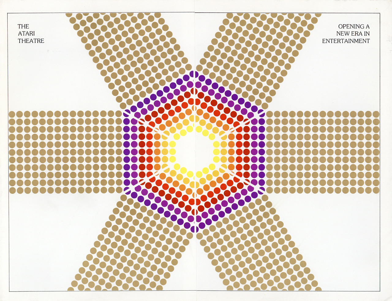 The Atari Theatre Kiosk experiment was short-lived and ill-advised, but the very attempt, documented in this glorious brochure, captures the era’s unrestrained pursuit of what Atari called “innovative leisure.” Produced between the 1975 home release of Pong and 1977’s Atari Video Computer System, the Theatre was billed as an option for “elegant high traffic” locations serving “high quality clientele,” as opposed to the shabby riff-raff then infesting smoke-filled pool halls, penny arcades, and pinball parlors—video arcades didn’t pop up in the States until 1978, when Space Invaders came to town. The very idea of arcade cabinets is presented here as low-class (despite Atari inventing them), mere “vending machines” that had to be “rolled in and pushed against the wall.”