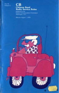 This 1978 CB rules publication from the FCC discusses the rules and regulations around the use of Citizens Band radio as well as frequently asked questions around licensing and use of a CB. The booklet includes an insert that the reader could use to apply for a license to use CB radio. (The FCC was receiving so many CB license applications during the mid-1970s that they had established an entire zip code in Gettysburg, Pennsylvania—17326—to speed up handling of the requests.) From the rules and prohibitions detailed within this booklet one can observe and note the ways that people were using (and abusing, in the eyes of the FCC) the CB frequencies during the fad’s peak. Transmissions of music, rebroadcasts of commercial radio or television, and advertising of all sorts, including political, are strictly prohibited, as are “obscene, indecent or profane words, language or meaning.” Conversations are limited to five minutes, but oddly CB radios are allowed to be patched into telephone calls (and telephone answering services); a commercial small-business need for reaching sales and delivery personnel on the road is obviously being given room to operate here.