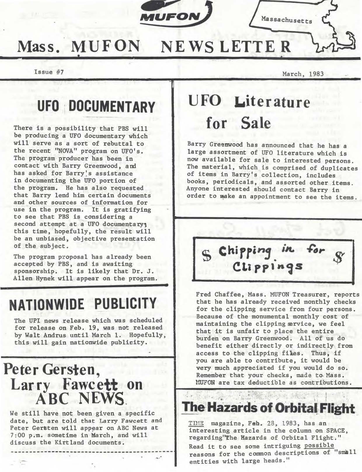 mufon massachusetts cover 1983 Published May 25, 2020 at 1240 × 1615 in “Fact—Not Fiction”: UFO Journals from the Archives for the Unexplained ← Previous Next → Cover of The Mass. MUFON Newsletter, USA, 1983. Share this:Tweet