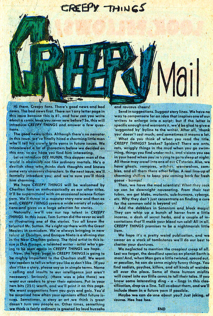 Pingback: Beyond Human Conjecture: Charlton Comics’ “Creepy Things” – Mike Ap